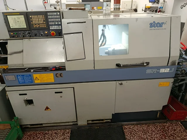 CNC automat STAR SR-32. Max. průměr obráběné tyče 32 mm, poháněné nástroje, obrábění ve vřetenu i protivřetenu, obrábění z 3 m tyčí